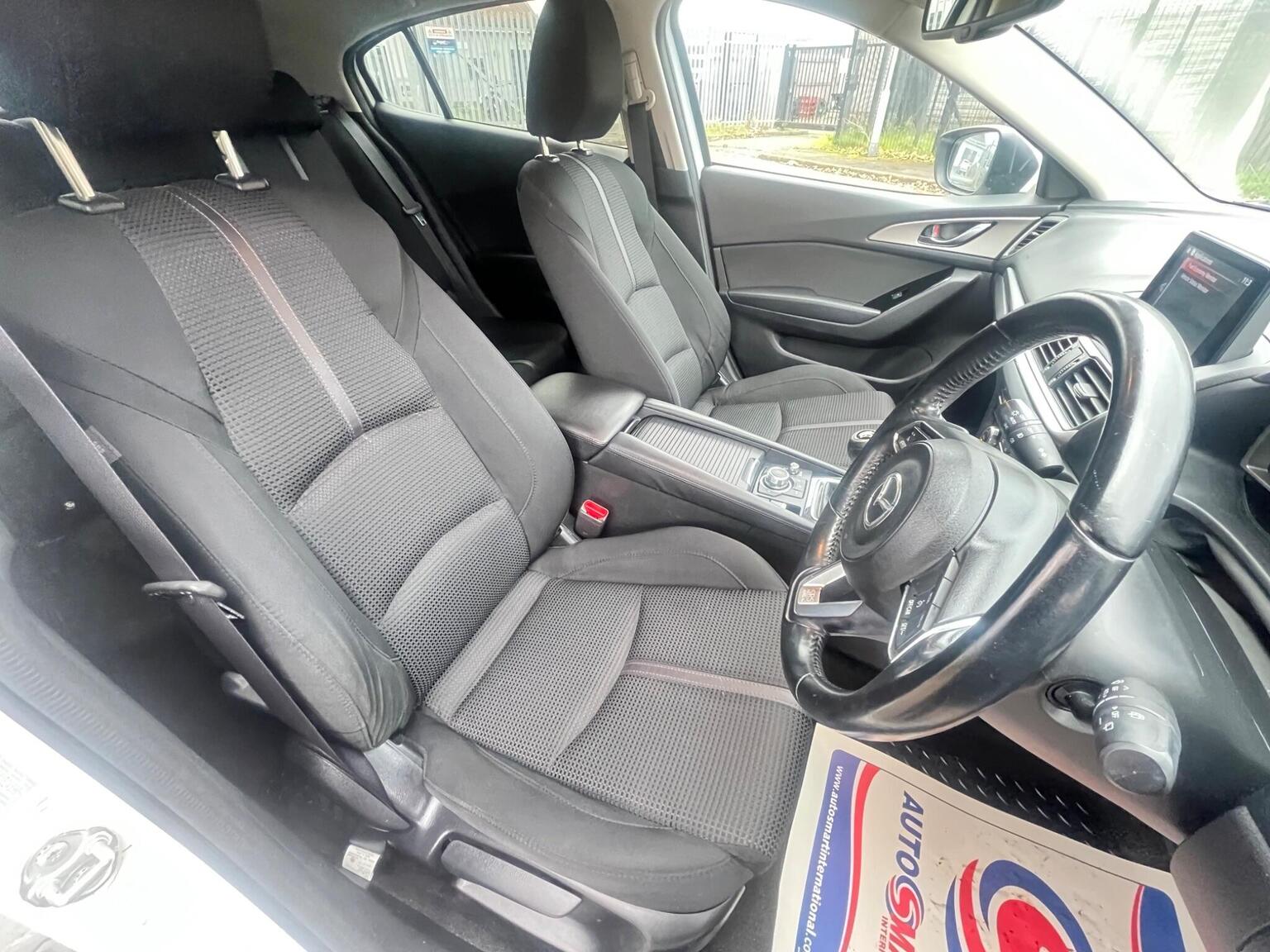 Here we have a Mazda 3 2.0 SKYACTIV-G Nav SE-L with only 63,000 miles in White. The Mazda has been extremely well maintained comes with service history. Vehicle has a long MOT till July 2026, no advisories on the previous MOT. The vehicle has only had two owner since new. This vehicle is ULEZ compliant. The Mazda engine provides a performance punch of 118bhp, and car motors in comfort and style. This Mazda is very economical to run and benefits from a low insurance group. The vehicle runs and drives fantastically, tyres, interior and exterior in excellent condition. A few of the features the Mazda are climate control, ABS, power steering, cruise control, electric windows, heated seats, electric mirror adjustment, Adjustable Speed Limiter, Aircon dual zone control, front and rear arm rests, Combined Bluetooth Phone and Audio Streaming System, Door Mirrors - Electrically Adjustable-Heated-Folding, Engine Start-Stop Button, Headup display, isofix rear seats, Daytime Running Lights, central locking, aux port, sat nav, privacy glass, parking sensors and alloy wheels. Our promise is to provide vehicles which are extremely stringently selected we really do pride ourselves in acquiring outstandingly good examples that have been maintained properly, we are extremely fussy and we really do cherry pick ONLY the very best cars to retail. We provide all finance packages that cater to all individual circumstances and budgets (including low credit rating) and we don't require any deposit for finance applications. We supply all our vehicles with a 6 months nationwide parts and labour warranty and offer fully comprehensive extended warranty for up to 3 years. We also take any part exchange vehicle regardless of age or mileage and most importantly offer a competitive price. We have a reliable delivery team enabling us to offer a nationwide delivery service for our vehicles